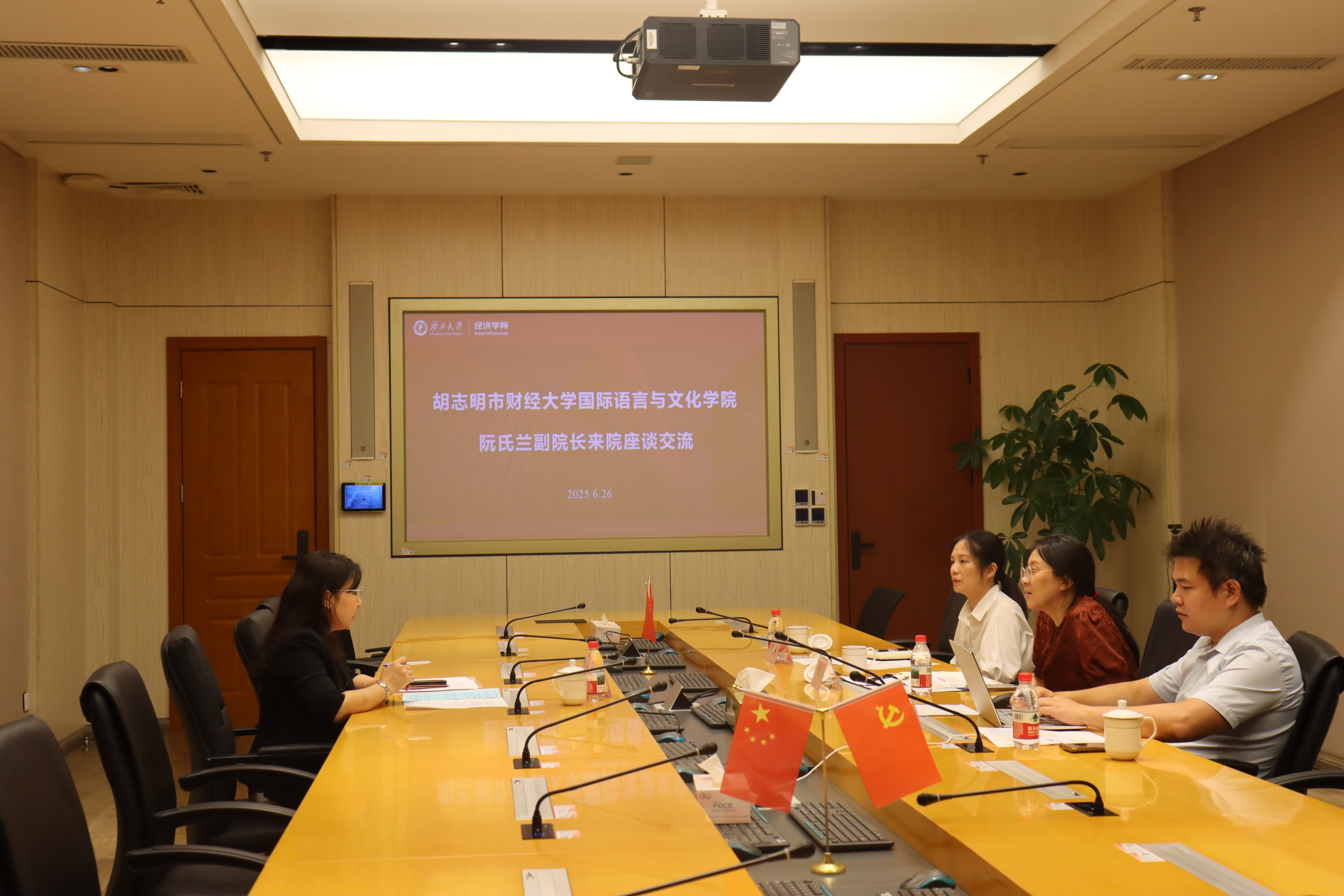 6月26日,越南胡志明市财经大学阮氏兰副院长到访古天乐代言太阳集团网址。双方就深化教育合作、促进学术交流等议题展开座谈交流。学院副院长公正主持座谈,中国—东盟研究院越南研究所负责人谢德富,院研究生教学办公室负责人黄芸参与座谈。