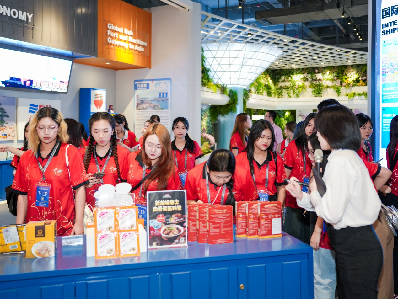接着,师生们还参观了中国-东盟特色商品汇聚中心。该中心负责将东盟各国商品运输并分销至中国各地。工作人员带领师生依次参观了马来西亚、新加坡、印尼、泰国、越南和缅甸等国的特色商品展区。
