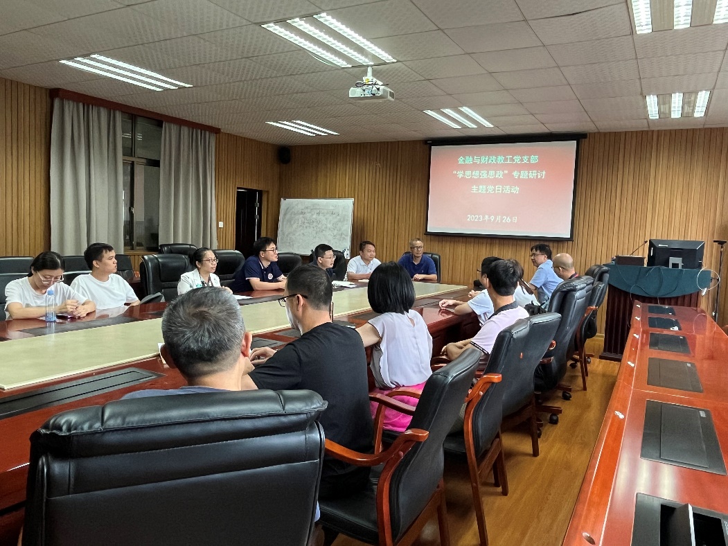 研讨活动中,谭春枝教授、梁权熙教授、老党员黄绥彪教授等分别结合主题教育的内容与自己出版的教材和正在开展的教学课程进行了金融专业课程思政建设经验的分享。谭春枝教授和梁权熙教授分别从学校人才培养的质量标准体系、思政育人大格局、本科教学中的教案设计要求等出发,结合习近平新时代中国特色社会主义思想的系列思想内容,通过多案例解析了如何从学思想到强思政的具体过程。黄绥彪教授是支部党龄最长的同志之一,也是金融学课程的资深教授,他介绍了学习习近平新时代中国特色社会主义思想和党的二十大精神后开发设计的系列思政课程元素,结合自己年内出版的金融学教材中的思政元素挖掘,为支部党员进行了全面剖析和经验分享。