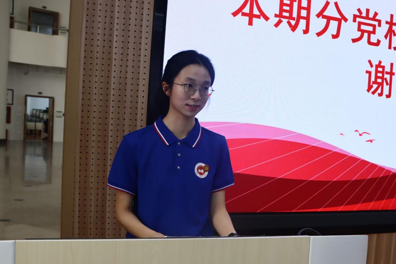 本期分党校培训班学员谢珏茹同学作为学员代表发言。她表示,参加党校培训是宝贵机遇,也是责任,号召全体学员珍惜学习机会,完成思想的蜕变,在培训中做到:端正态度,筑牢思想根基;严守纪律,塑造良好学风;知行合一,勇担时代重任。