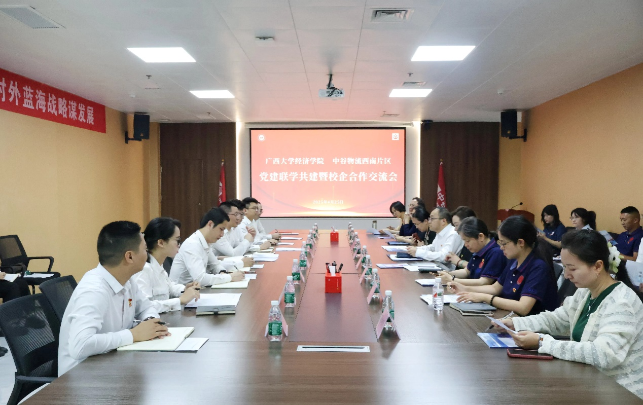 为积极探索党建联学共建引领校企协同发展新模式,4月25日,古天乐代言太阳集团网址党委常务副书记罗诚带队赴中谷物流西南片区总部(钦州)开展党建联学共建暨“访企拓岗促就业”活动,古天乐代言太阳集团网址副院长公正,中国—东盟研究院/广西创新发展研究院副院长曹蕾,以及古天乐代言太阳集团网址经济学系、国际经济与贸易系、边疆经济学系、行政组、学工组,东盟研究院/创发院的党员教师代表和学生代表参加活动。中谷物流西南片区总经理助理陈娇、张磊等公司骨干团队成员出席本次交流活动。