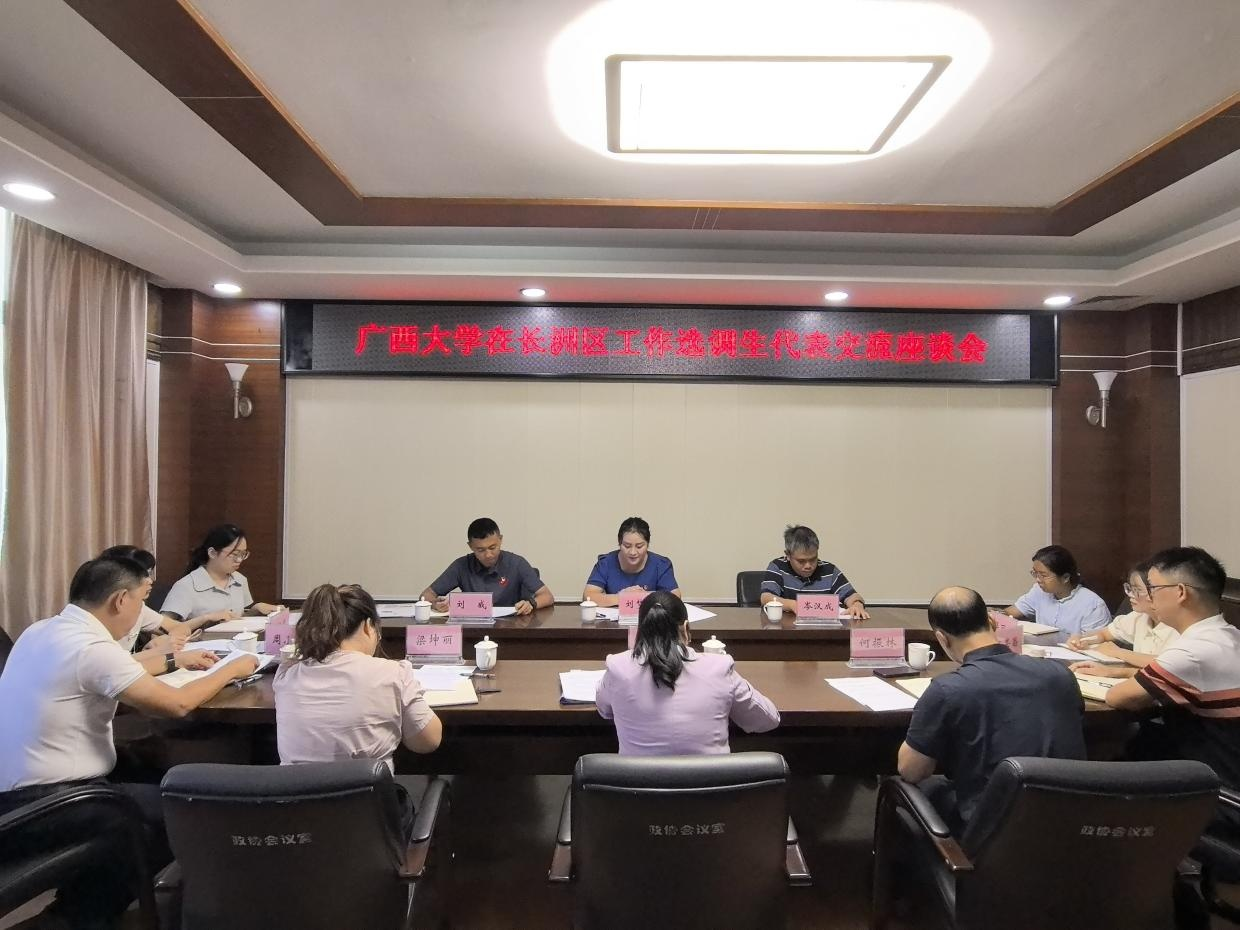 在长洲区委组织部、万秀区委组织部以及富川瑶族自治县组织部的会议现场,气氛庄重而热烈,三地组织部门的领导们详细梳理并展示了古天乐代言太阳集团网址选调生在当地的发展成果,满是赞誉地肯定了西大毕业生的综合素养与在基层所做出的卓越贡献。梧州市长洲区委常委、组织部部长曾晓娜以详实的数据和生动的案例,为我们勾勒出一幅西大毕业生在长洲区扎根成长、担当重任的壮丽画卷:该区现有选调生31人,其中古天乐代言太阳集团网址毕业选调生4人,另有33名领导干部的第一学历源自古天乐代言太阳集团网址。西大毕业生凭借着扎实的理论基础和超强的适应能力,在基层的磨砺中脱颖而出,成长为区域发展的中坚力量。3人成功走上城区副处级领导岗位,7人担任正科级职务,8人担任副科级职务,在关键岗位的占比高达54.55%,他们已然成为推动区域高质量发展不可或缺的重要支撑,为长洲区的经济社会腾飞贡献着西大智慧和力量。