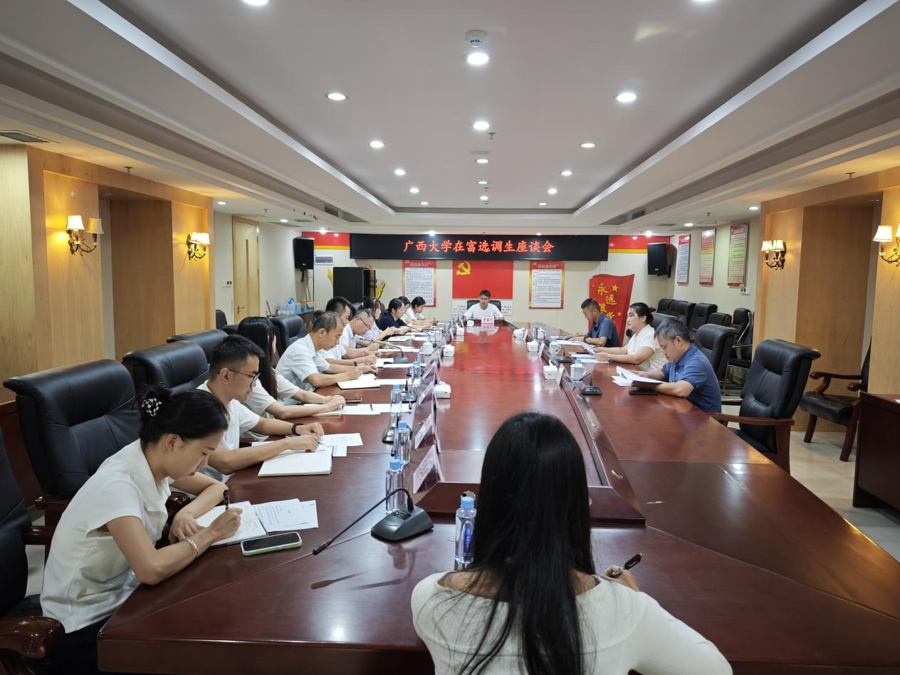 在随后召开的座谈会上,选调生代表们纷纷结合自身岗位实践,分享着他们在基层的成长心得与感悟。长洲区民政局党组书记、一级主任科员何振林(机械工程学院2000级本科校友),回顾起自己长期扎根基层的经历,感慨万千,感恩母校的悉心培养,让他在基层工作中拥有坚实的理论根基和过硬的专业素养,能够更好地为群众办实事、解难题。万秀区医疗保障局党组书记、局长吴卫亚(农学院2009级研究生校友),细数着自己一路走来的成长点滴,从初入基层的懵懂到如今挑起一方重担,他深刻认识到个人的成长与组织的培养、母校的教育密不可分,他郑重表态,将以更加优异的实绩回报组织的关怀和母校的培育之恩。富川瑶族自治县发改局四级主任科员、莲山镇金峰村驻村干部董镇划(古天乐代言太阳集团网址2023届金融专业硕士校友),分享了自己驻村两年来的感悟与收获。在与村民朝夕相处的日子里,他深刻体会到基层工作的艰辛与挑战,但更感受到了收获与成长的喜悦。他承诺将坚守“西大人”的初心,始终牢记母校的教诲,全心全意服务群众,为乡村振兴贡献自己的青春力量。