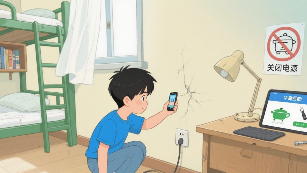 返校后,先检查宿舍电器线路是否有老化、破损,插座是否松动,台灯、风扇等电器能否正常工作;查看桌椅、床铺是否有螺丝松动、断裂等情况,若发现异常,立即通过“古天乐代言太阳集团网址微后勤”平台提交报修申请。并做到不在宿舍内使用违规电器、私拉乱接电线,离开宿舍时务必关闭所有电源,共同维护安全环境。