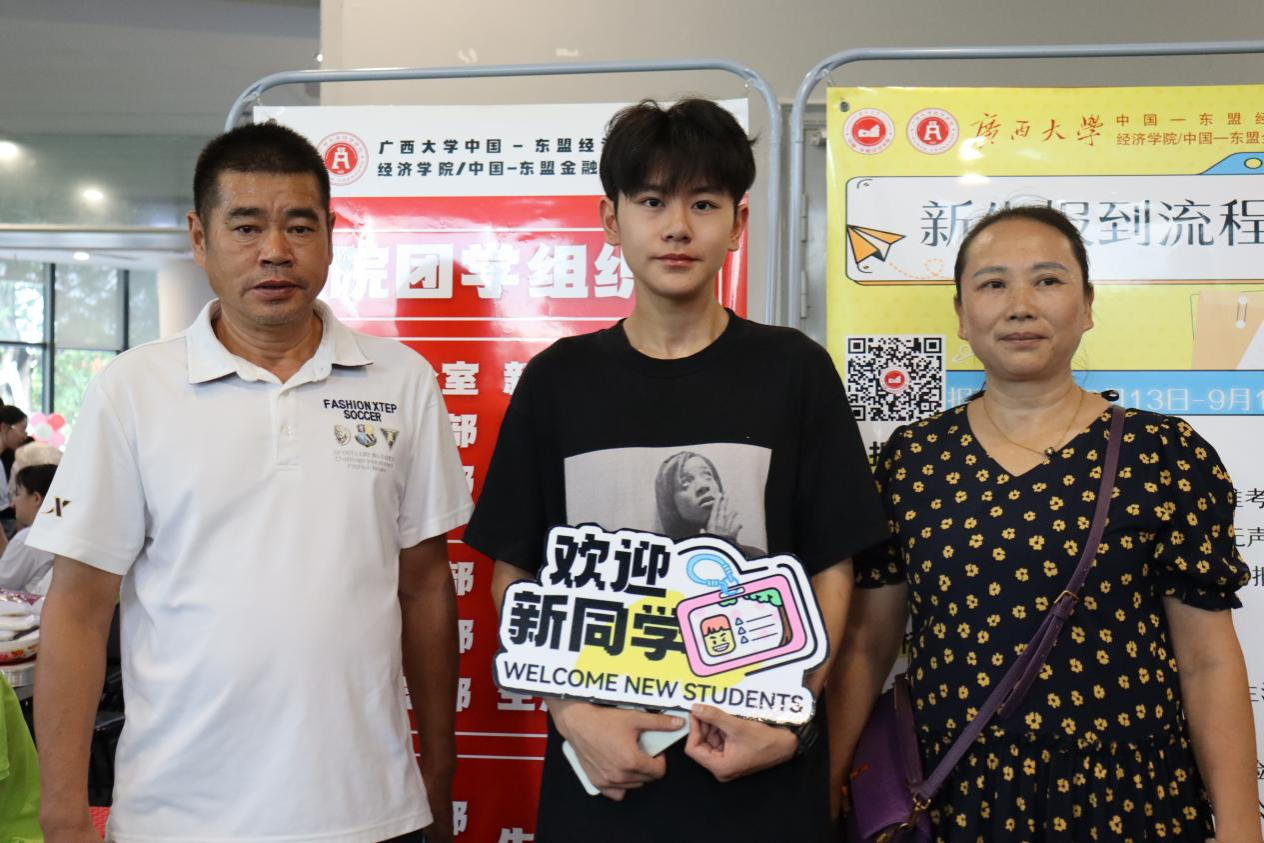 新生和家长拍照留念
