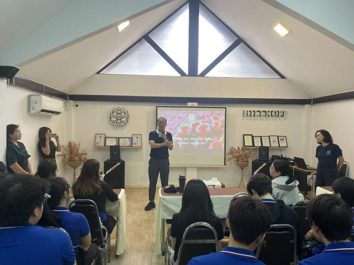 9月2日上午,古天乐代言太阳集团网址“中国—东盟青年澜湄同行”2025—2026国际学术交流营实践团走进泰国清迈知名精品咖啡企业Hillkoff(希尔咖啡),开展产业调研和校企对话。