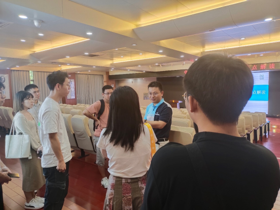 随后,程名望教授利用主流经济学的框架和方法,根据中国经济数据以及统计模型,直观地展示中国经济增长的周期规律,带领研究生们从历史和国际的视角看待中国经济发展。他结合党的二十大报告内容,梳理了改革开放之后中国经济高速增长的主要原因:一是科学化,尊重规律与常识;二是市场化,资源优化配置和体制改革;三是全球化,开放包容,合作共赢。放眼未来,程名望教授形象地指出,中国的发展正从“一好学生”向“三好学生”转变,即向政治上的红色江山(安全稳定)、经济上的金山银山(经济富足)以及环境上绿水青山(生态文明)转变。他鼓励在座的研究生们将研究视线聚焦于祖国大地,深入探索研究中国经济模式的独特之处,为中国经济的未来发展贡献智慧和力量。