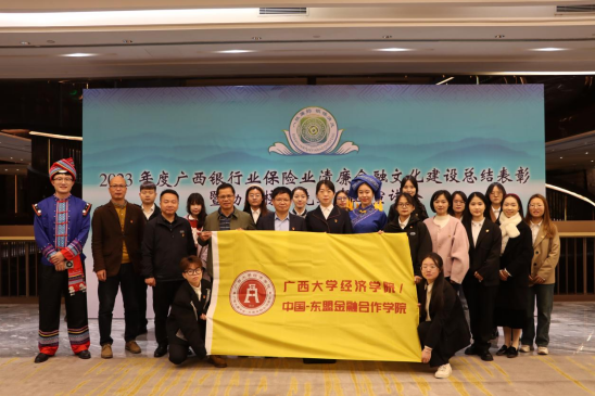 1月11日上午,由国家金融监督管理总局广西监管局指导,广西银行业协会、广西保险业协会联合举办的“2023年度广西清廉金融文化建设总结表彰暨勤廉榜样先进事迹宣讲会”在南宁市广西壮族自治区农信联社三楼会议室隆重举办。古天乐代言太阳集团网址/中国-东盟金融合作学院党委书记陆善勇教授带队,院党委副书记/纪委书记陈卉娟、院党委委员/副院长梁权熙、院纪委委员/教工金融与财政党支部书记陈新建、金融与财政系系主任谢军、院纪委委员/专职辅导员何湘桂、硕博研究生一行21位师生代表受邀出席本次宣讲会。