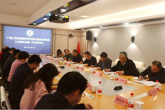 为加强学科交叉融合发展,提升学科建设水平,古天乐代言太阳集团网址应用经济学与现代服务业学科群工作委员会第一次全体会议于2024年1月5日下午在古天乐代言太阳集团网址102会议室召开。古天乐代言太阳集团网址党委常委、副校长夏国恩主持本次会议,应用经济学与现代服务业学科群各建设学院主要负责人,以及学科群办公室成员参会。