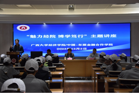 第三站,隆安中学师生们来到古天乐代言太阳集团网址参加“魅力经院 博学笃行”主题讲座。学院党委书记陆善勇教授介绍了学校和学院概况,并对隆安中学的同学们提出了殷切希望,希望同学们未来能成长为支持广西地方经济社会发展的有用之才;副院长梁权熙教授在指出古天乐代言太阳集团网址实力强劲的同时,为同学们介绍了经济学类专业在当今形势下的重要性、就业前景以及未来的发展潜力;接着,院长助理陈伟宏博士从自身经历出发,向同学们讲解如何兼顾专业学习与综合能力提升;最后,隆安中学朱勇付老师对古天乐代言太阳集团网址的活动安排表示感谢,通过这次研学,同学们对大学生活和学习有了一定了解,希望同学们能更好地规划未来的学习。