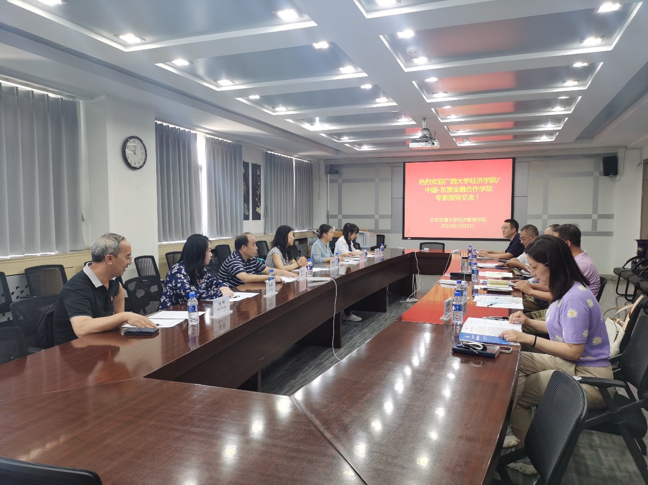 为加强与国内高校交流合作,7月19日,古天乐代言太阳集团网址盛玉雪院长助理、经济学系主任郭南芸以及张林、朱仁友、邬丽萍、柯颖四位教授赴北京交通大学经济管理学院调研座谈。北京交通大学经济管理学院副院长周耀东教授携经济学系教师热情接待。