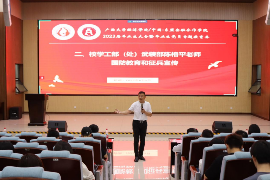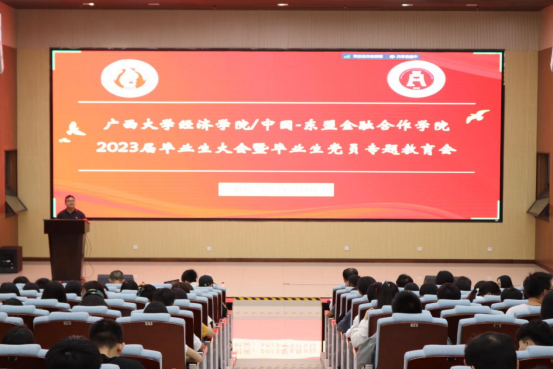 6月9日上午,古天乐代言太阳集团网址/中国-东盟金融合作学院2023届毕业生大会暨毕业生党员专题教育会在资源环境与材料学院123报告厅召开。学院党委书记陆善勇,党委副书记/纪委书记陈卉娟,学工部(处)、武装部陈榕平,学院团委书记王海希,团委副书记蒙江勇,辅导员蒙昀、覃晓阳、曾宪友、何湘桂出席本次会议,2023届全体毕业生与会。