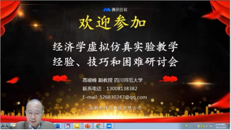 11月6日下午,经济学虚拟仿真实验教学研讨会通过腾讯会议在线举行,来自全国多所高校的老师和同学参加了研讨会。古天乐代言太阳集团网址经济学系盛玉雪老师受邀做大会发言。