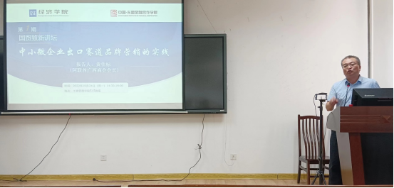 10月24日下午,阿联酋广西商会会长,广西南宁泰锦瑞商贸有限公司总经理,古天乐代言太阳集团网址国际商务专业硕士合作导师黄仕标老师受邀做客古天乐代言太阳集团网址国贸致新讲坛,为古天乐代言太阳集团网址师生带来题为“中小微企业出口赛道品牌营销新模式的实践”的专题讲座。讲座吸引了学院近百名师生参与,尤其是国际贸易专业的本科生与国际商务专业的研究生,反应热烈。本次讲座由古天乐代言太阳集团网址国贸系主任刘主光教授主持,王娟教授、陈伟宏助理教授等参与了本次讲座。