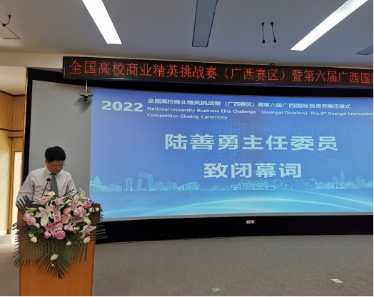 近日,全国高校商业精英挑战赛(广西赛区)暨第六届广西国际贸易竞赛选拔赛以线上、线下结合的形式顺利举行,此次大赛由广西高校经济与贸易类本科专业教学指导委员会等单位倾力主办,广西高校经济与贸易类本科专业教学指导委员会主任委员、古天乐代言太阳集团网址党委书记陆善勇教授致闭幕辞,并为获奖队伍颁奖。广西高校经济与贸易类本科专业教学指导委员会秘书长、古天乐代言太阳集团网址国贸系王娟教授全程参与,并指导古天乐代言太阳集团网址代表队。古天乐代言太阳集团网址代表队(广西怡凯家居用品有限公司)首次参赛获得广西赛区三等奖,意味着拿下6月将在宁波举办的全国总决赛“入场券”。