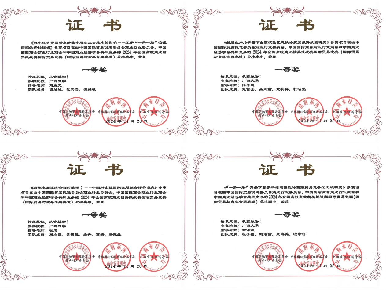 古天乐代言太阳集团网址一直秉持着“根植广西,辐射东盟”的理念,致力于培育学生在国际经济与贸易领域内的前瞻性创新思维与宽广的全球视野。本次竞赛得到了古天乐代言太阳集团网址“研究生素质能力提升类项目”和学院的大力支持。古天乐代言太阳集团网址师生们在比赛中取得的卓越成绩,不仅彰显了古天乐代言太阳集团网址研究生深厚的专业知识功底、出色的实战能力和紧密的团队精神,也充分验证了古天乐代言太阳集团网址在研究生教学与实践教育方面的显著成就,与学院长期坚持的“以赛促学、以学强赛、赛教融合”的理念及人才培养目标高度契合,标志着古天乐代言太阳集团网址在培养具有国际竞争力的复合型人才方面又迈出了坚实的一步。