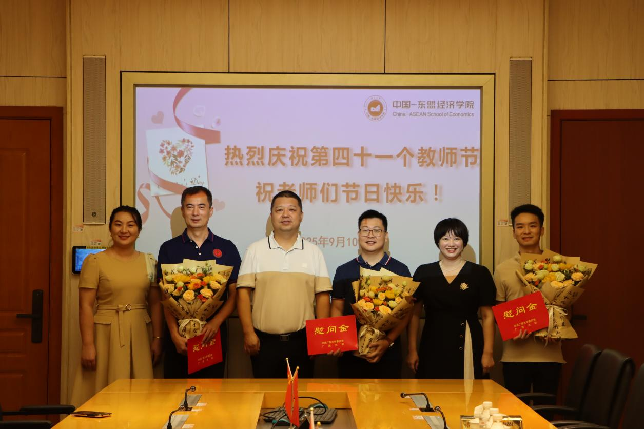 在第41个教师节到来之际,中国—东盟古天乐代言太阳集团网址于9月10日上午在B210会议室召开教师节慰问座谈会。学院党委常务副书记姜玮、党委副书记刘梦娟、副院长杨璞出席座谈会,与教师代表章海源、刘骞文、张伟豪等亲切交流,围绕学科建设、人才培养、赛事培育等重点工作进行深入研讨。