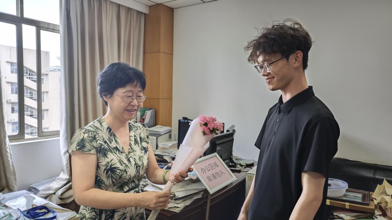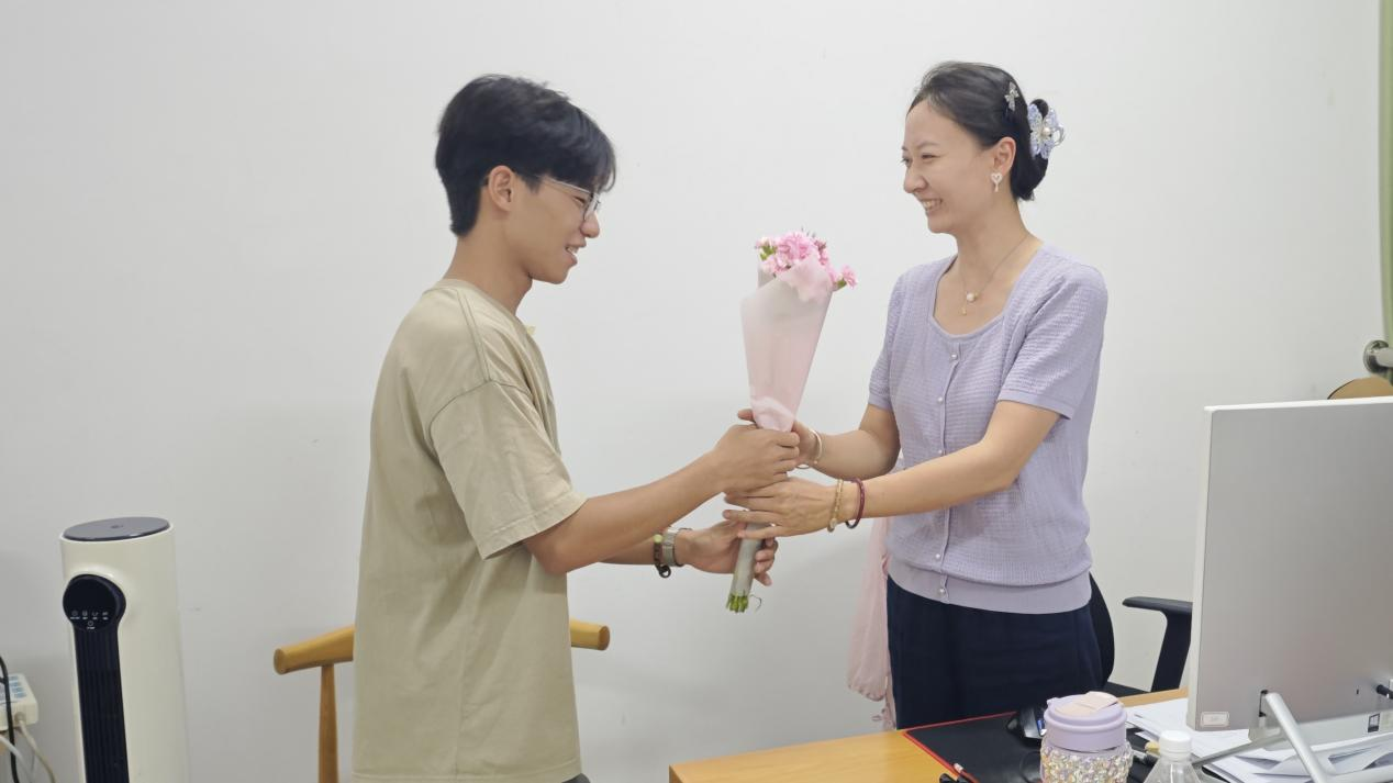 在第41个教师节来临之际,为弘扬尊师重教优良传统、传递学子深切感恩之情,中国—东盟古天乐代言太阳集团网址学生代表自发组织,于9月10日下午在学院办公楼举行了一场温馨而庄重的教师节献花活动,向学院领导、行政教辅老师与辅导员们致以节日的诚挚祝福与崇高敬意。