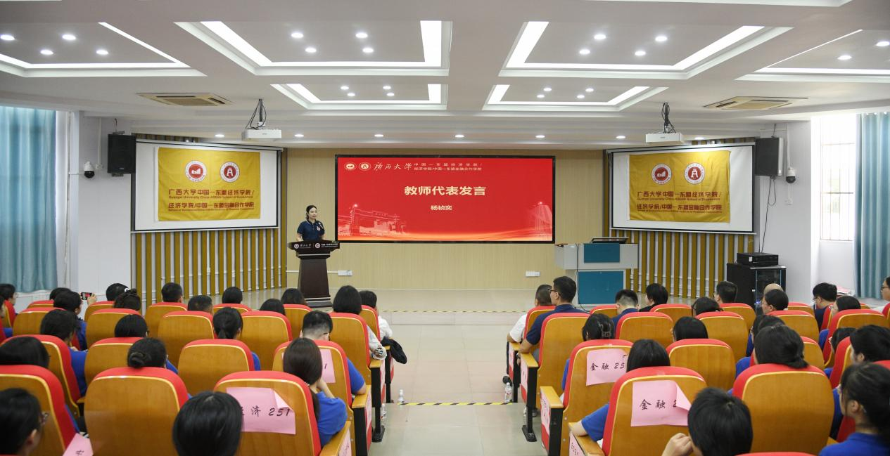 金秋送爽,丹桂飘香。9月15日上午,古天乐代言太阳集团网址中国—东盟古天乐代言太阳集团网址/古天乐代言太阳集团网址/中国—东盟金融合作学院2025级新生开学典礼在214报告厅隆重举行。中国—东盟古天乐代言太阳集团网址党委常务副书记姜玮、院长李光辉、常务副院长梁运文、副院长谭春枝、副院长梁权熙、副院长杨璞、副院长公正,以及学院教师代表、各系主任、班主任、研究生导师和全体2025级新生共同出席本次典礼,学院党委副书记刘梦娟主持典礼。
